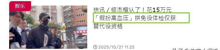 拘提没有多久后,修杰楷便交代了所有事情,据其透露,他是通过伪造血压异常,试图办理免疫,但经体检后仅获得替代役资格,原本仍想继续拼免役,但最终决定入伍服替代役。
